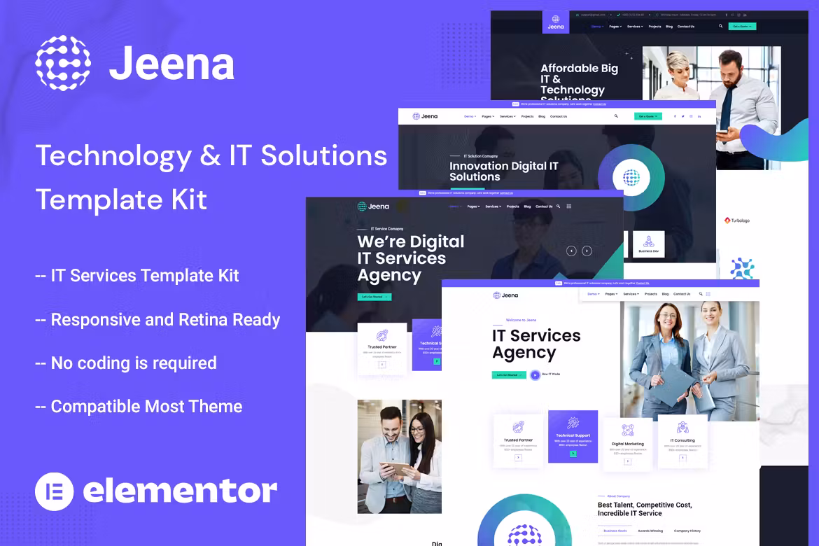 Jeena – Technology & IT Solutions Template Kit is ideal for any business website.