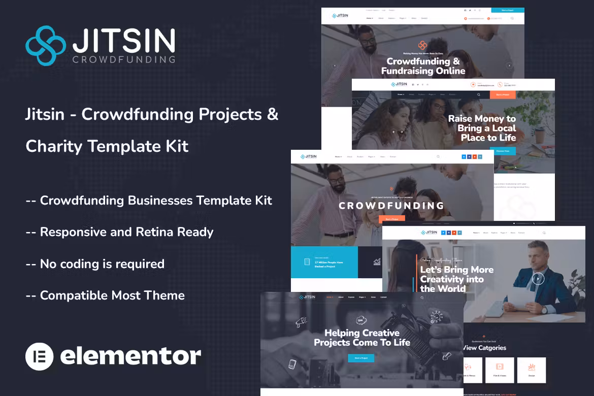 Jitsin is a sleek and clean Elementor Template Kit perfect for charity and crowdfunding projects. It is specifically developed for all crowdfunding businesses, charities, and contribution websites. Jitsin is also ideal for charity, fundraising, nonprofit, NGO, contributions, church, mosque, and all other non-profit charity and crowdfunding enterprises.